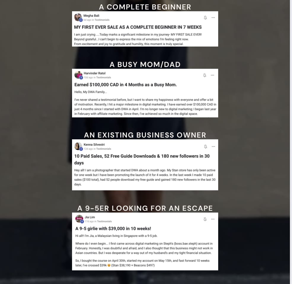 With DWA, you don’t need thousands of followers to see success. Even with a small following, people are killing it by using the right strategies and staying consistent. The simple, step-by-step training helps those with minimal experience start making big results.